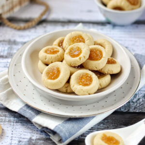 Do you love cookies and jam? These buttery thumbprint cookies are a must-bake. With a tender, shortbread-style base that’s not overly sweet, they leave plenty of room for a luscious jam center to shine. We’ve filled ours with Raspberry Lemon Verbena Jam and Apricot Lavender Jam, but feel free to use your favourite flavours—or mix and match to create a beautiful assortment of colourful cookies.