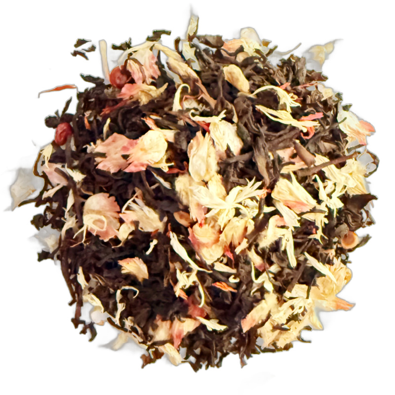 This deeply comforting black tea carries subtle creamy notes and a gentle cookie-like sweetness, while bright, berry-kissed hints add a festive sparkle. A scattering of petals gives the cup a soft glow, echoing the colour and charm of a winter hearth.